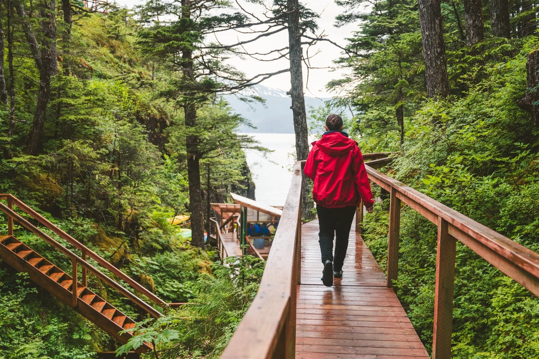There are several flights of stairs from the dock at Shearwater Cove up to the yurts, so please keep this in mind as you pack your bags. Soft luggage that can be worn as a backpack is highly recommended.